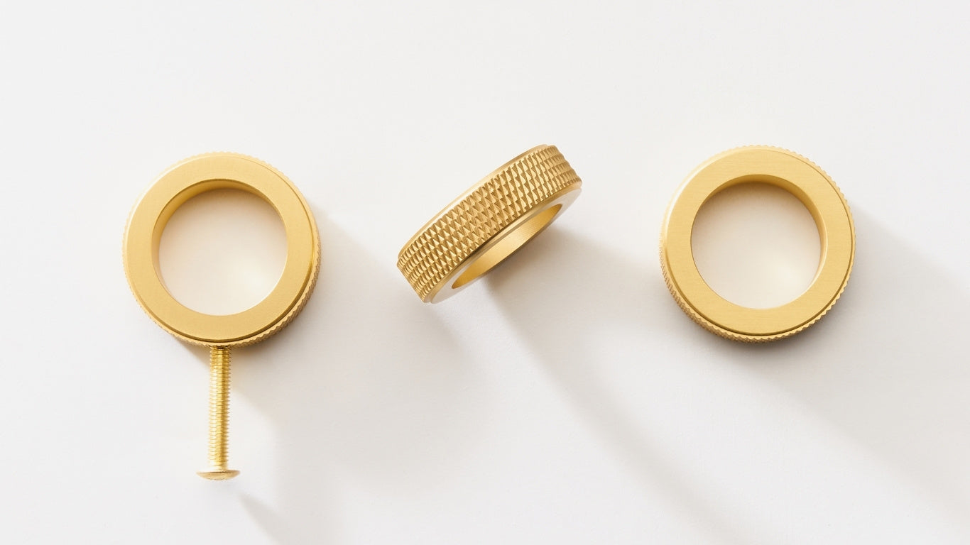 Forbedr din indretning med denne knop, der er fremstillet af solid messing med en elegant nubret kant. Det stilfulde design og den nubrede overflade giver både et godt greb og en moderne følelse, der komplementerer dine møbler og køkkenskabe. Den holdbare konstruktion sikrer, at knoppen bevarer sin skønhed og funktionalitet over tid. Uanset om du søger et tidløst eller moderne udtryk, er denne knop det ideelle valg til at løfte dit hjem.
