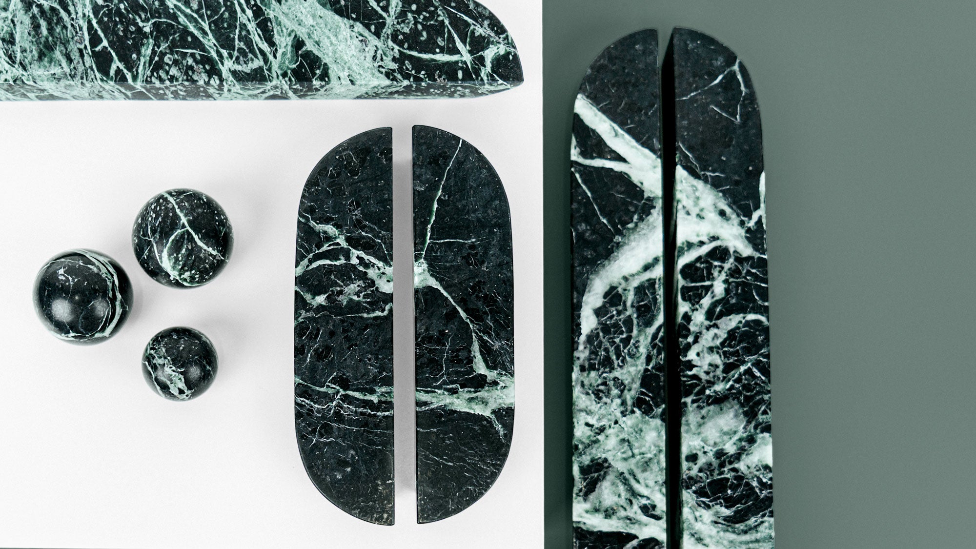 Verleihen Sie Ihren Schränken oder Möbeln einen markanten Ausdruck mit diesem Griff aus exklusivem Green Flower-Marmor – einem Naturstein, der für seine lebhaften grünen und weißen Adern bekannt ist. Jedes Griffpaar ist ein Unikat, bei dem Muster und Farbnuancen auf eine Weise variieren, wie es nur echter Stein vermag. Die Griffpaare sind aus einem einzigen Steinblock gearbeitet, sodass die Maserung nahtlos ineinandergreift. Sie besitzen eine fein geschliffene Oberfläche mit seidenmatter Ausführung.