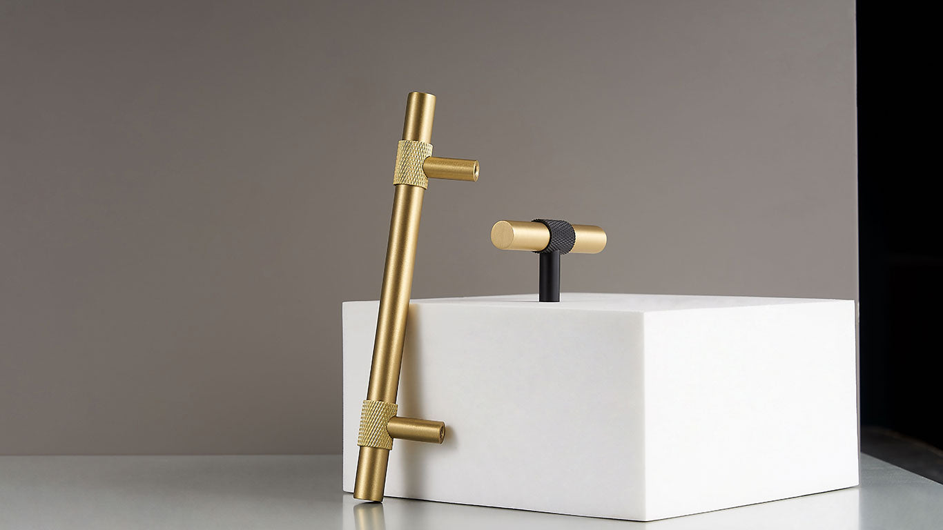 Griff aus massivem Messing mit eleganter gerändelter Befestigung – ein stilvolles Detail für moderne Inneneinrichtungen. Dieser Messinggriff mit seinem exklusiven gerändelten Muster schafft die perfekte Balance zwischen Eleganz und Funktionalität. Die gerändelten Details verleihen ein trendiges und anspruchsvolles Aussehen, das sowohl Küchenschränke als auch Möbel aufwertet und gleichzeitig eine dezente Struktur und angenehme Griffigkeit bietet. Für einen einheitlichen und harmonischen Look im ganzen Haus kombinieren Sie ihn gerne mit T-Bars oder Knöpfen aus derselben Serie. Kreieren Sie einen durchdachten und zusammenhängenden Stil, der das Ambiente in Ihrem ganzen Zuhause mit diesem zeitlosen Designgriff aufwertet.