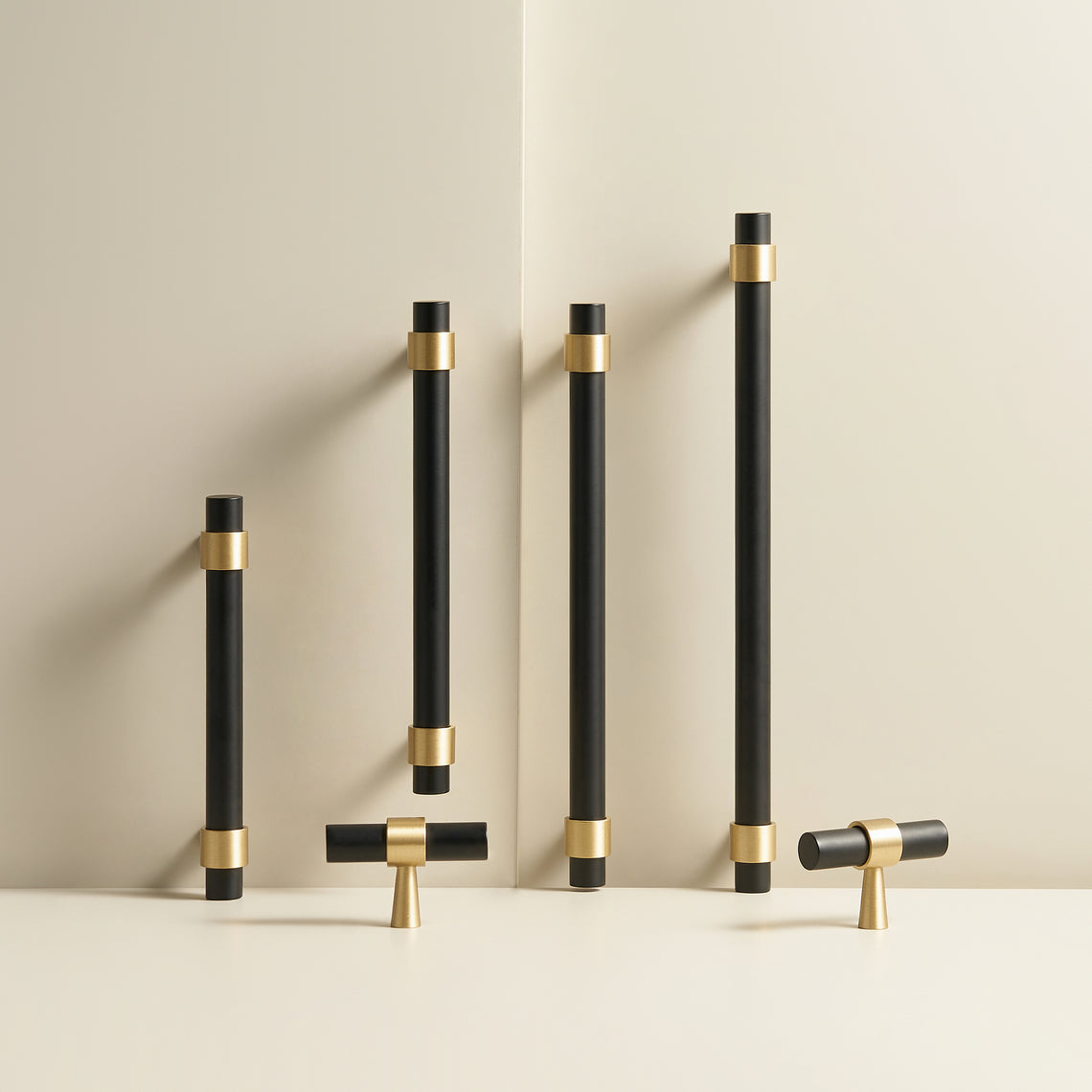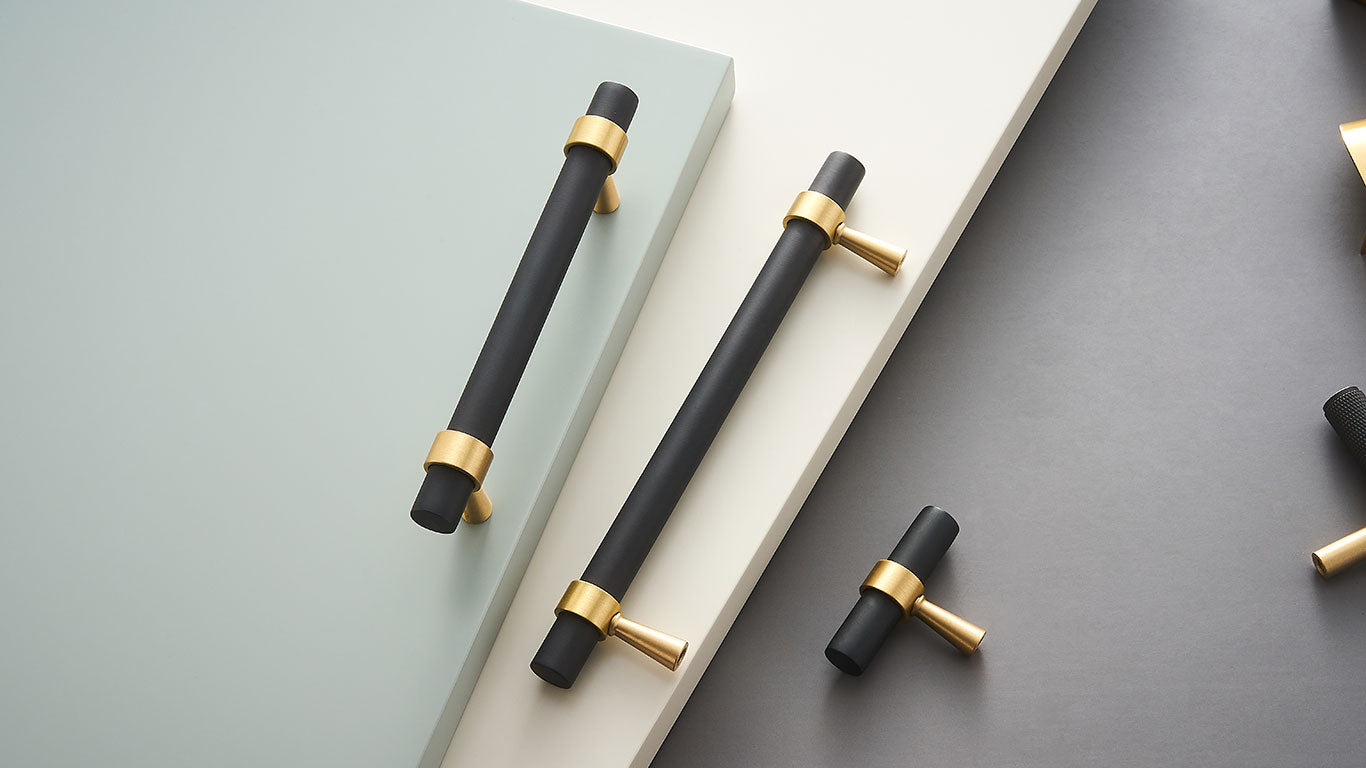 Eleganter Griff für Küchenschränke und Möbel aus massivem Messing mit einer mattschwarzen Oberfläche und kontrastierender Befestigung in gebürstetem Messing. Diese Kombination aus Schwarz und Messing schafft ein modernes und zeitloses Gefühl, das jede Einrichtung bereichert. Die tiefe schwarze Farbe des Griffs harmoniert perfekt mit dem warmen Messington und verleiht Küche, Bad oder Wohnzimmer einen exklusiven, industriellen Stil. Ideal für diejenigen, die eine Balance zwischen moderner Eleganz und klassischem Charme suchen.