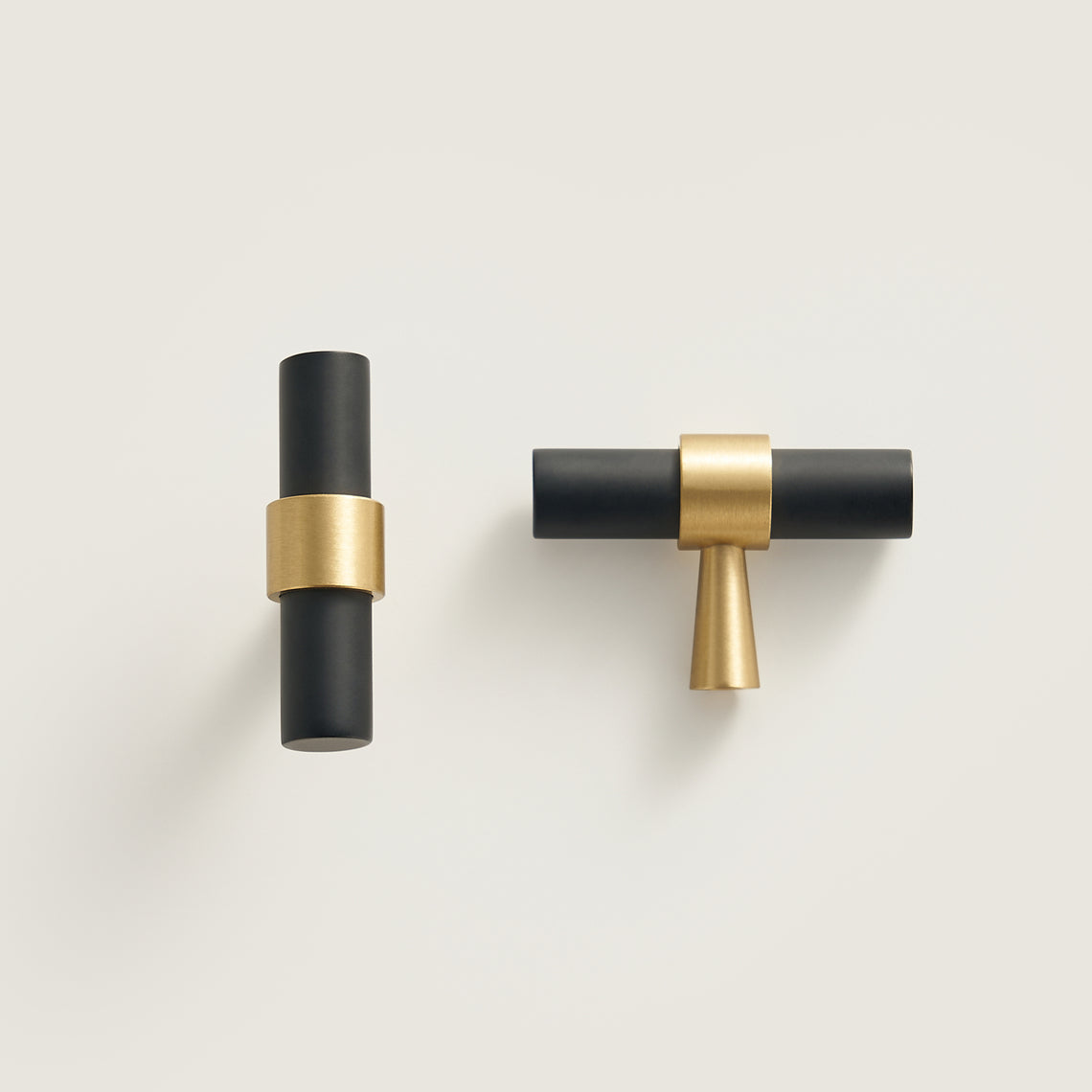 Élégante T-bar en laiton massif avec une finition noire et une fixation contrastante en laiton – un détail qui apporte une touche remarquable à votre intérieur. Son design moderne rehausse votre décoration avec style. Pour une harmonie parfaite, retrouvez également les poignées assorties de la même collection sous la rubrique "Poignées" du menu.