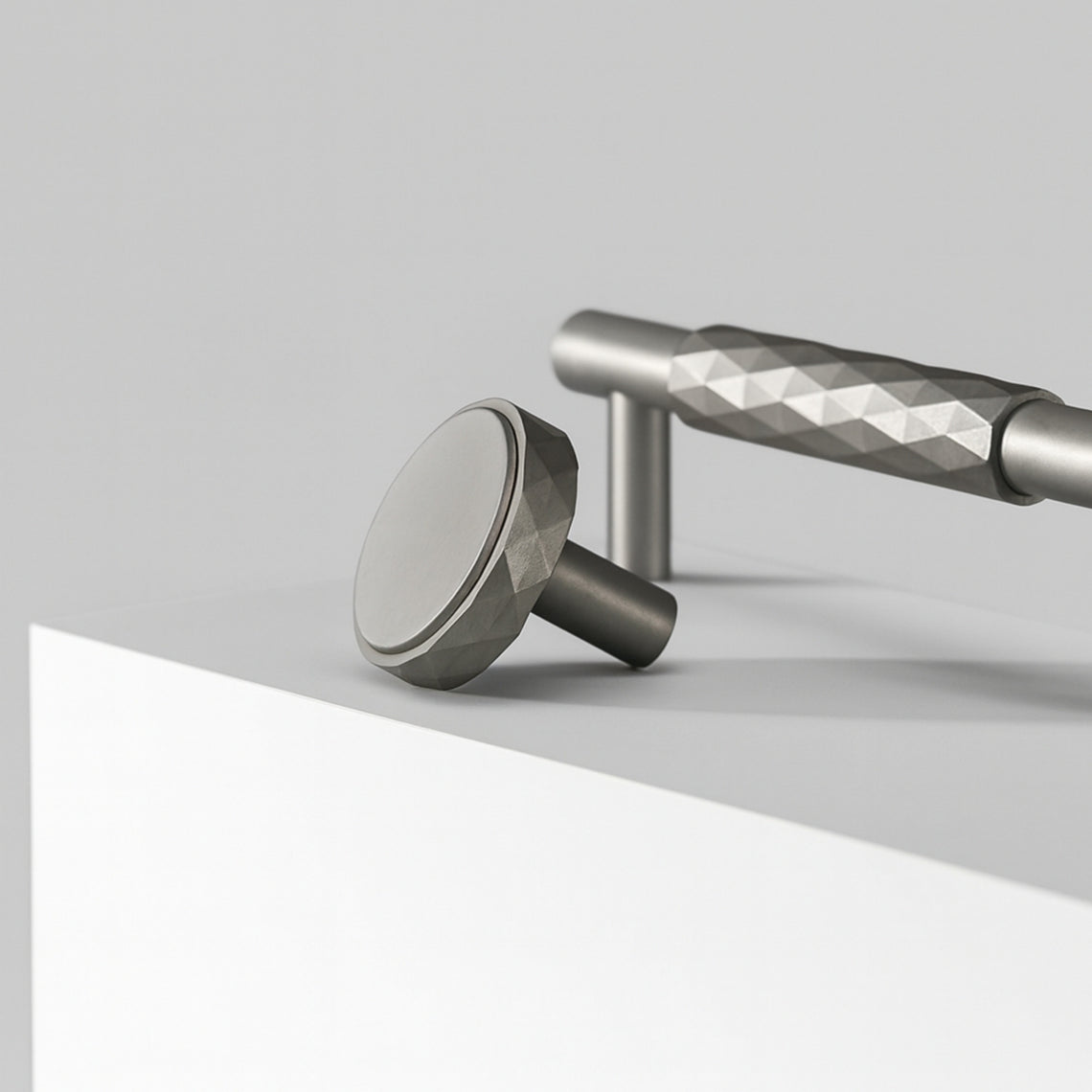 Gałka 3119 to elegancki i stylowy detal o unikalnej diamentowo szlifowanej formie, zaprojektowana, aby podkreślić zarówno meble, jak i drzwi szafek w kuchni lub łazience. Przemyślana forma i wysokiej jakości materiał mosiężny sprawiają, że gałka idealnie nadaje się jako pojedyncza dekoracja na meblach, lub w połączeniu z innymi pasującymi uchwytami, tworząc spójne i wyrafinowane wrażenie.