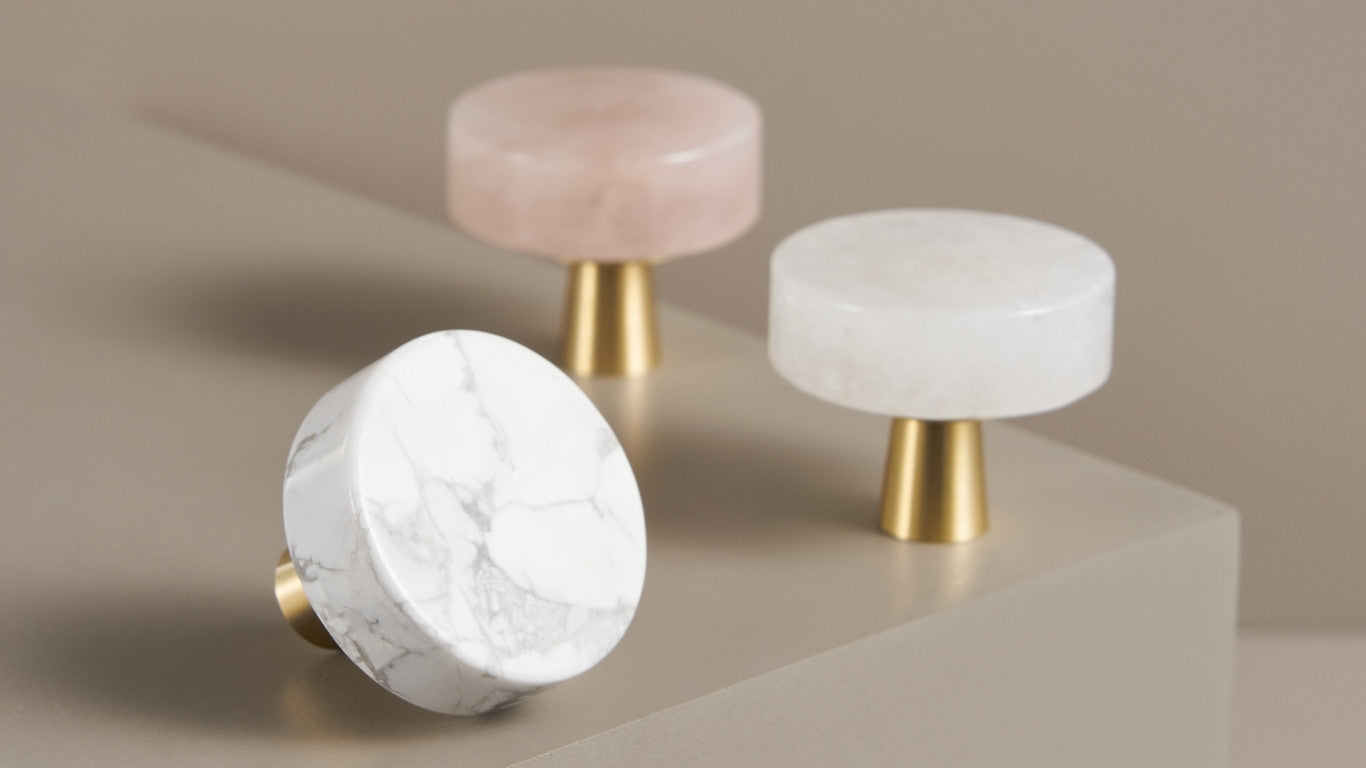 Knob CH066 | Rock Crystal + Brass | Pink Knob CH066 | Marble + Brass